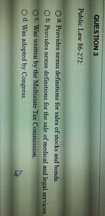 Solved Question 3 Public Law 86 272 O A Provides Nexus Chegg Com